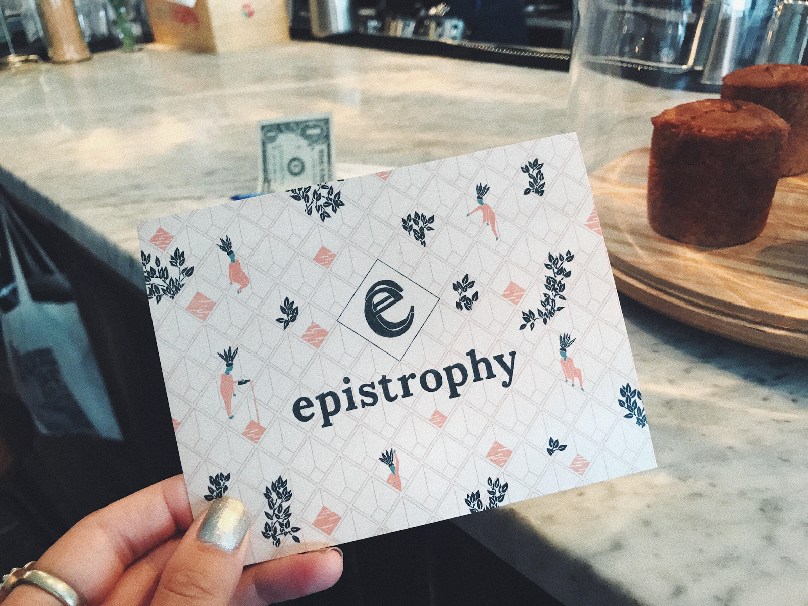 名前はepistrophy、ニューヨーク、マンハッタンのノリータ(Nolita/ North Of Little Italy) という地区にあります。Mott通り 沿い、Kenmare通りとSpring通りの間に位置しています。可愛らしい外観で、外にも席があり、みんなが命をかけてに写真を撮っていました!笑